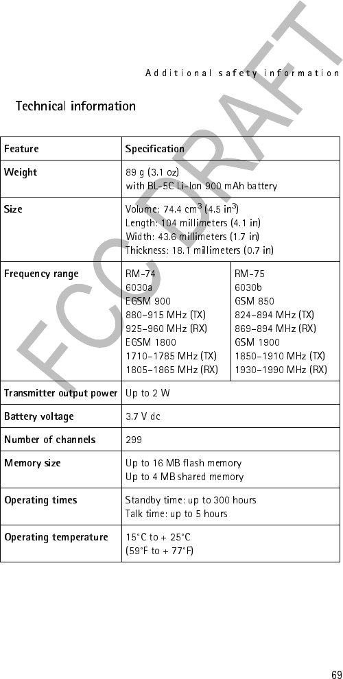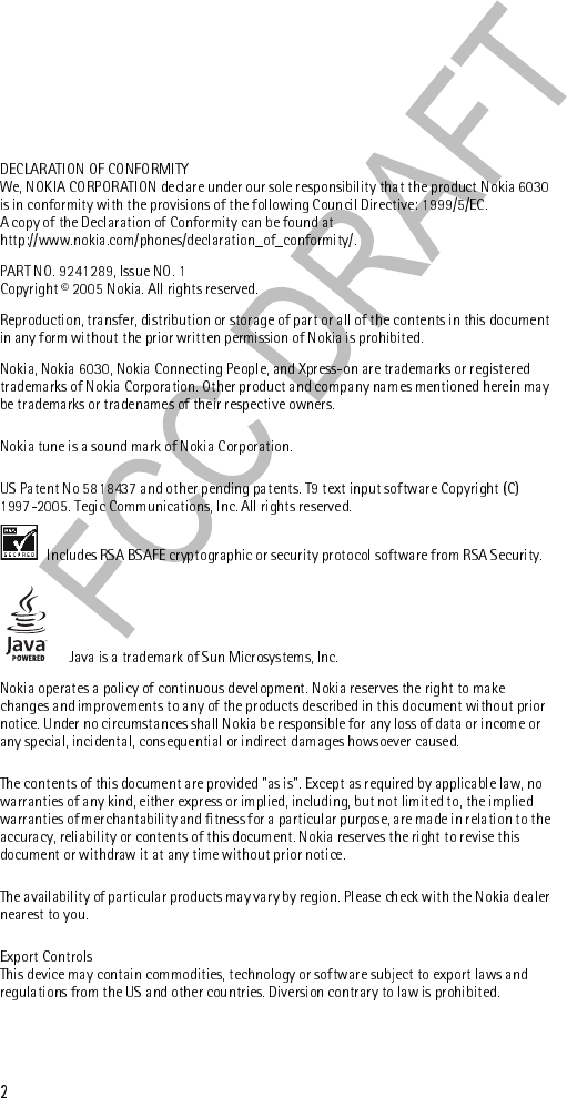 Microsoft Mobile Oy GSM 850/ 1900 PCS Cellular Telephone 6030 FCC Draft2 ENv 1 9241289