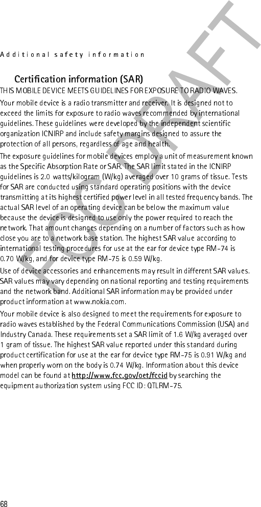 Microsoft RM-75 GSM 850/ 1900 PCS Cellular Telephone User Manual 6030 FCC Draft2 ENv 1 9241289