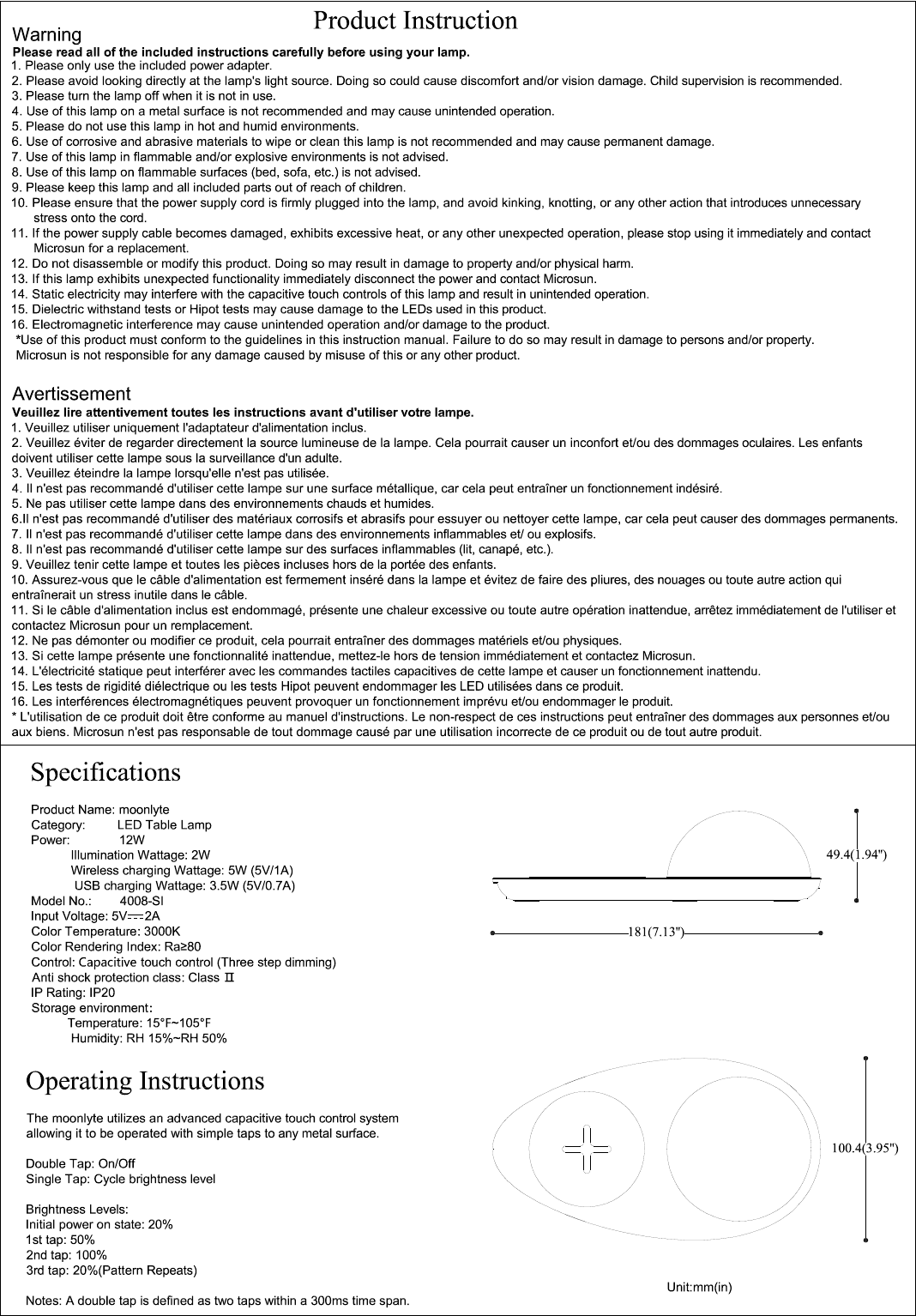 Microsun Lamps 4008-SI LED Portable Luminaire User Manual 15 4008 SI UserMan
