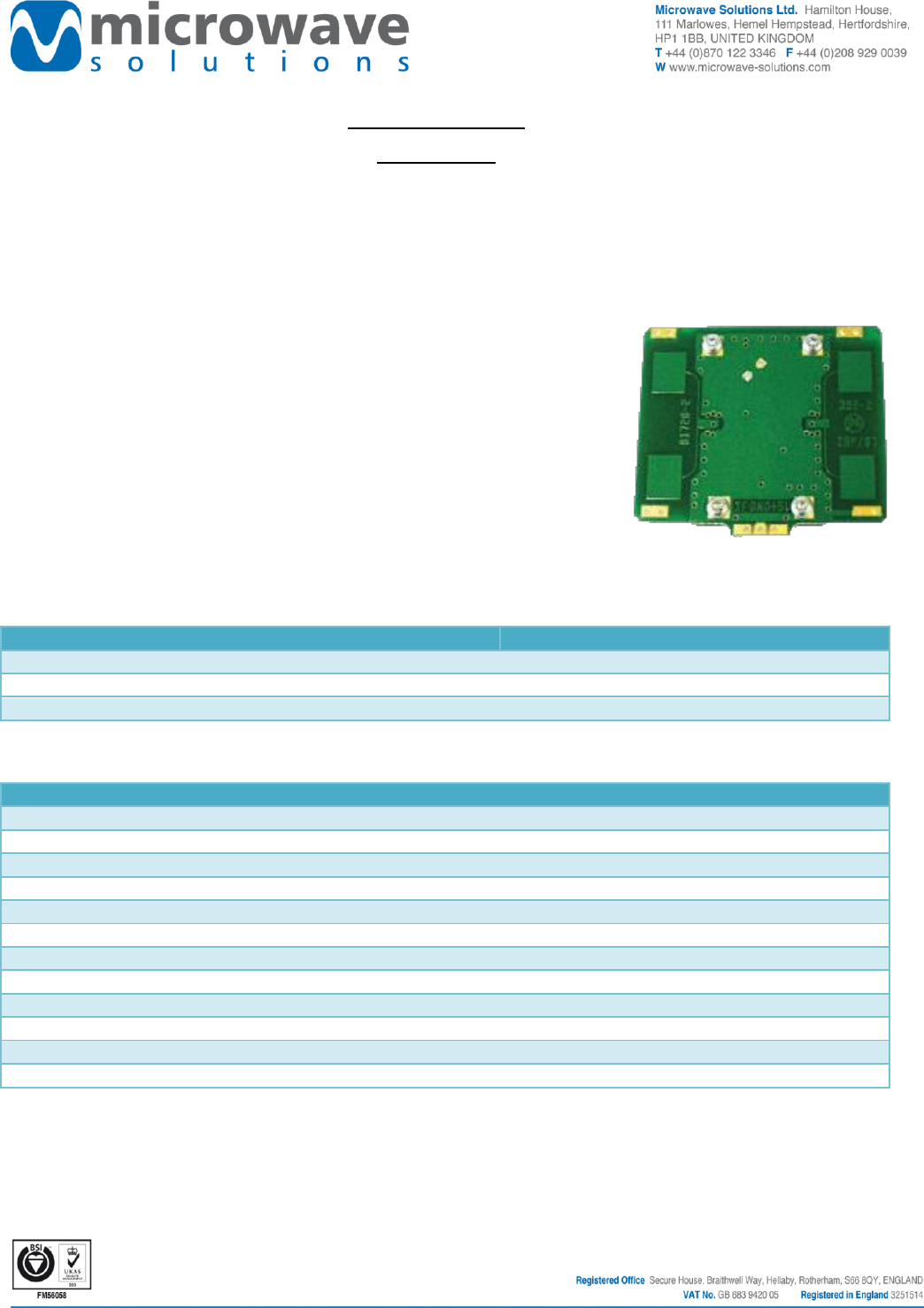 Microwave Solutions Ltd. has established and maintains a Quality System that has been audited by BSI and holds ISO