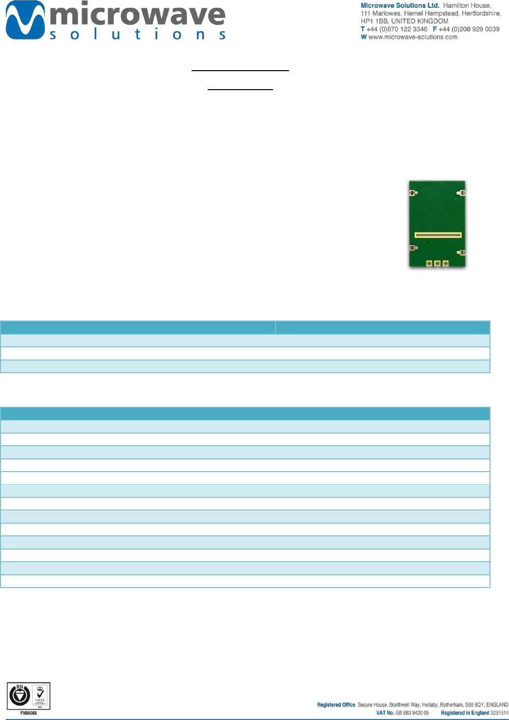Microwave Solutions Ltd. has established and maintains a Quality System that has been audited by BSI and holds ISO