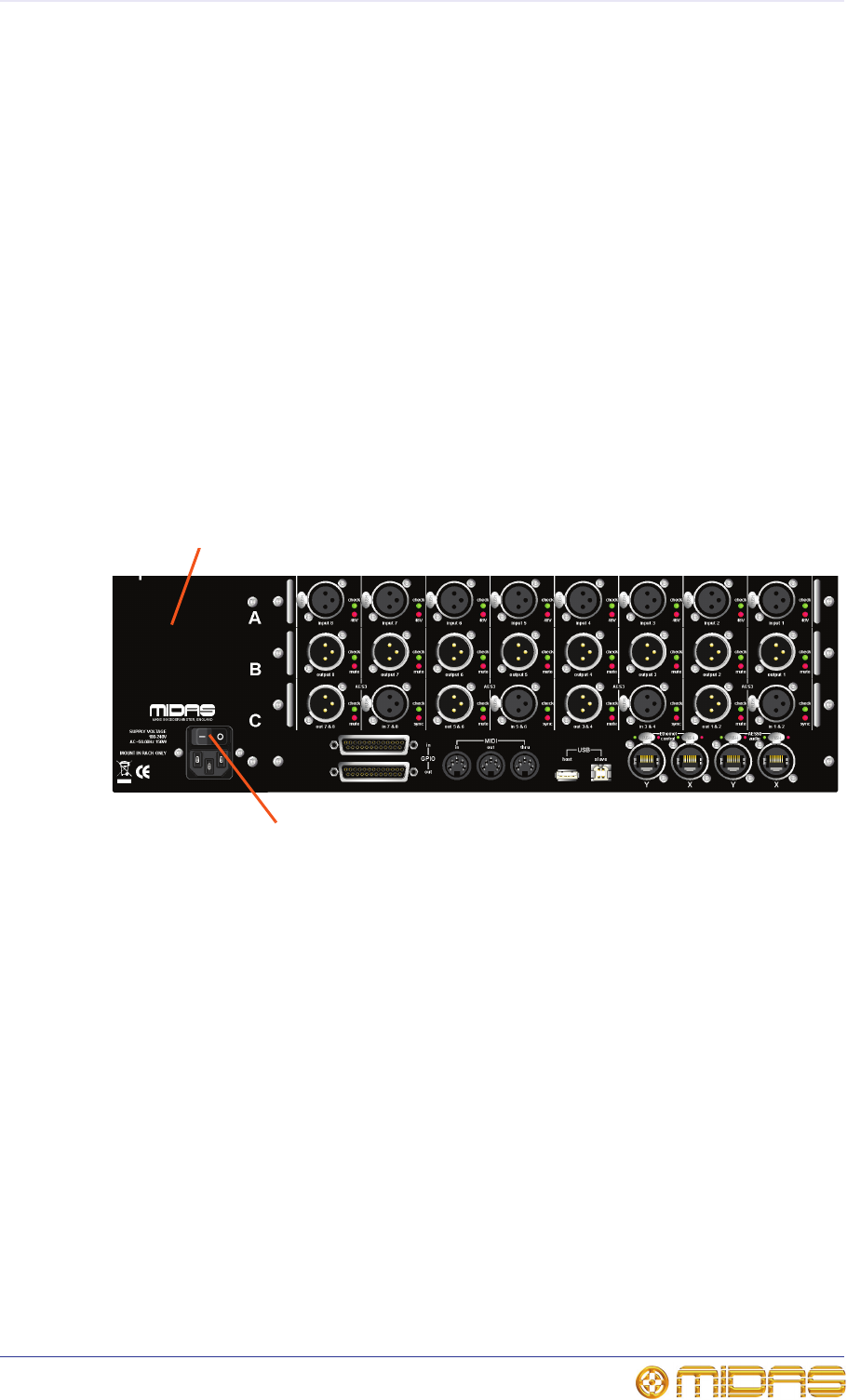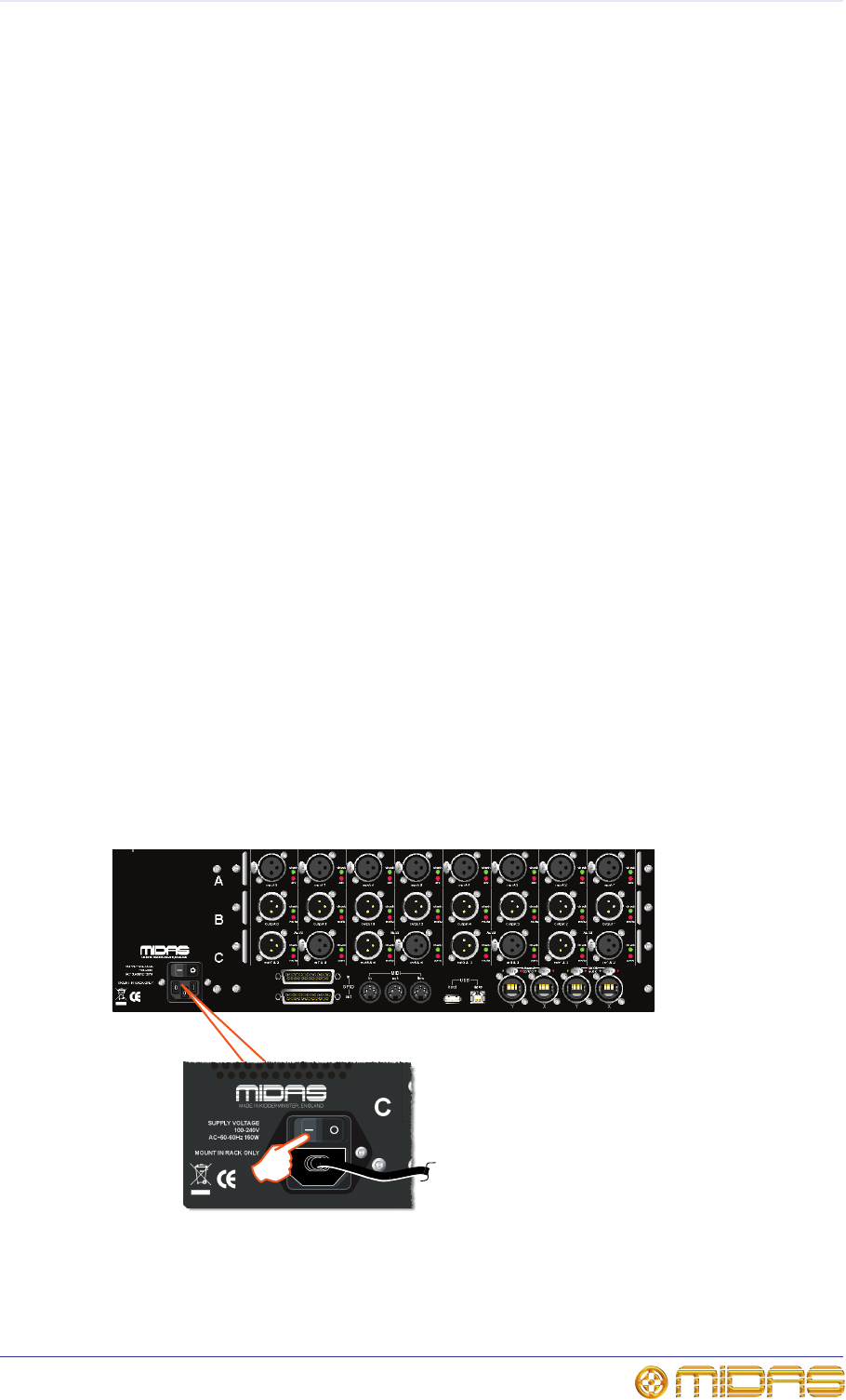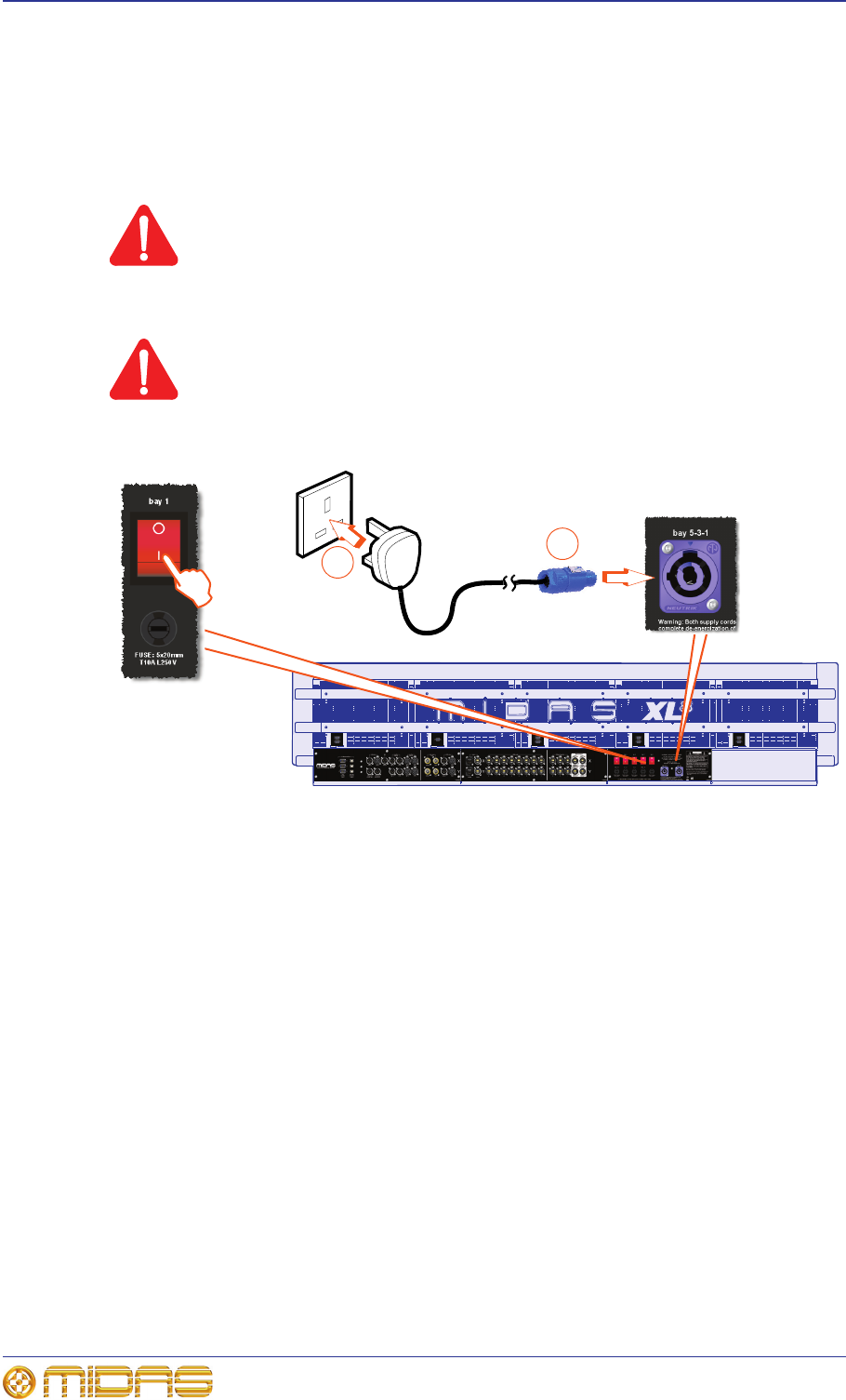 1Plug the two control centre’s mains PowerCon® cables into the mains power