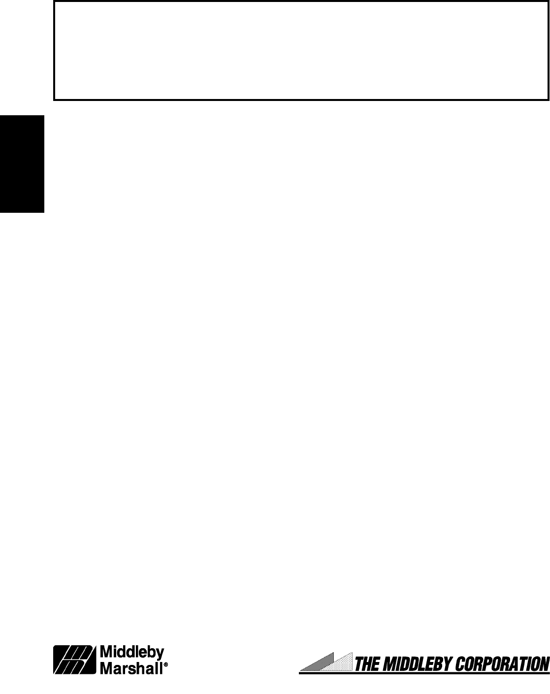 Middleby Cooking Systems Group 1400 Toastmaster Drive Elgin, IL 60120 USA (847)741-3300 FAX (847)741-4406