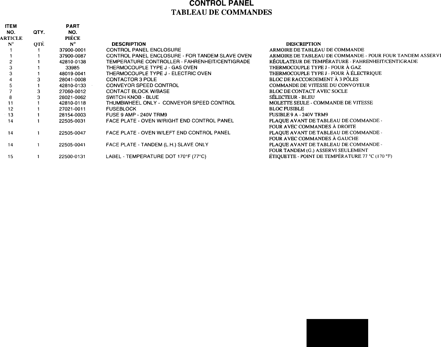 Using any parts other than genuine Middleby Marshall factory manufactured parts relieves