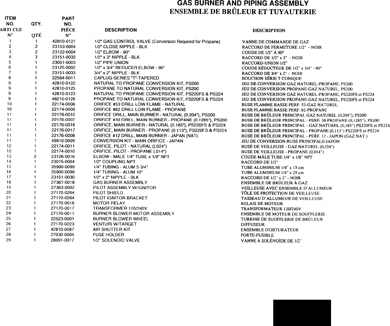 PS200/220/224 Parts