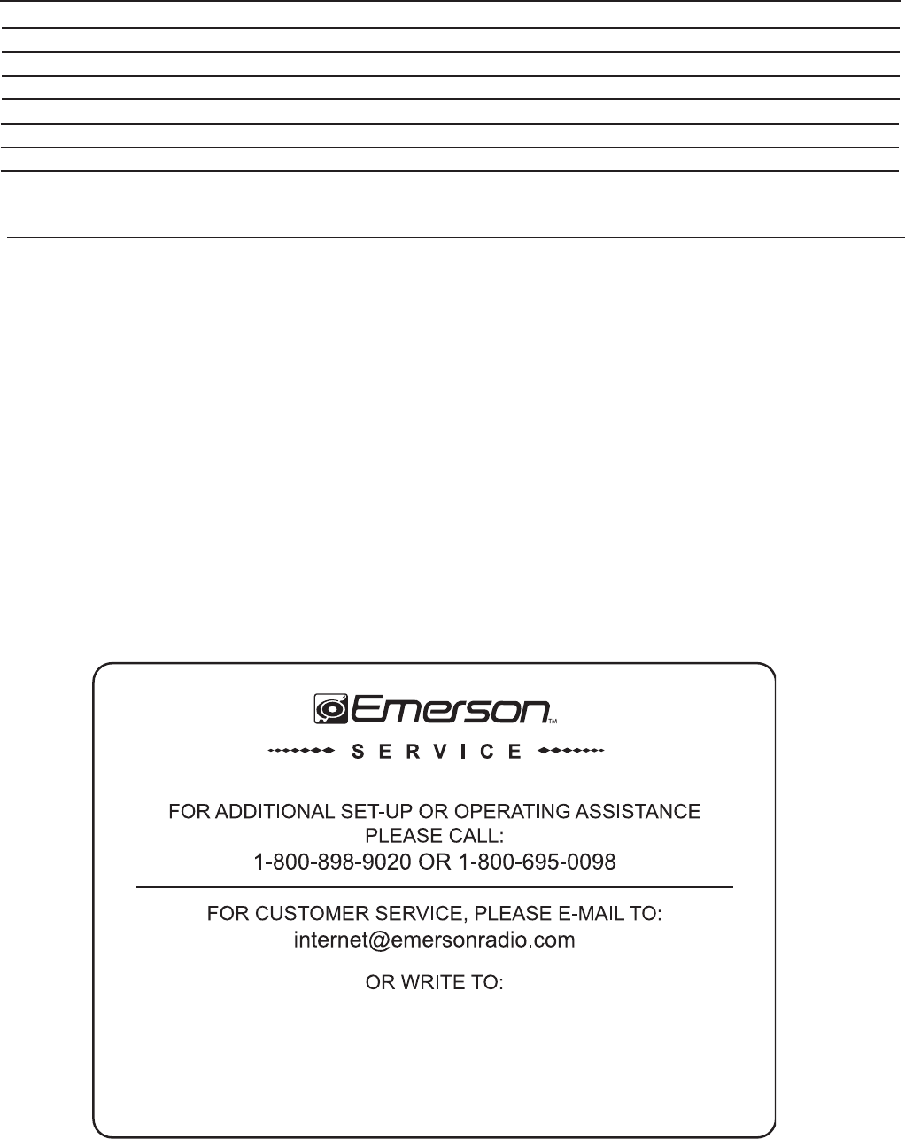 Emerson Radio Corp. warrants this product to be free from manufacturing defects in original material, including original