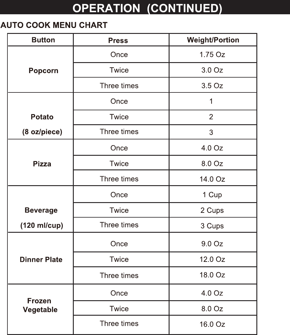 * Replacement of a defective magnetron for seven (7) years from date of original purchase (labor not included after
