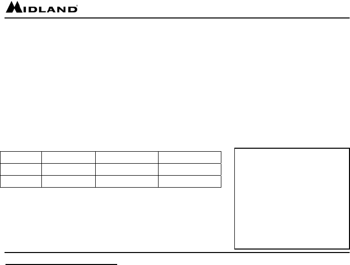 Midland Radio Corporation will repair or replace, at its option without charge, any Midland FRS/GMRS