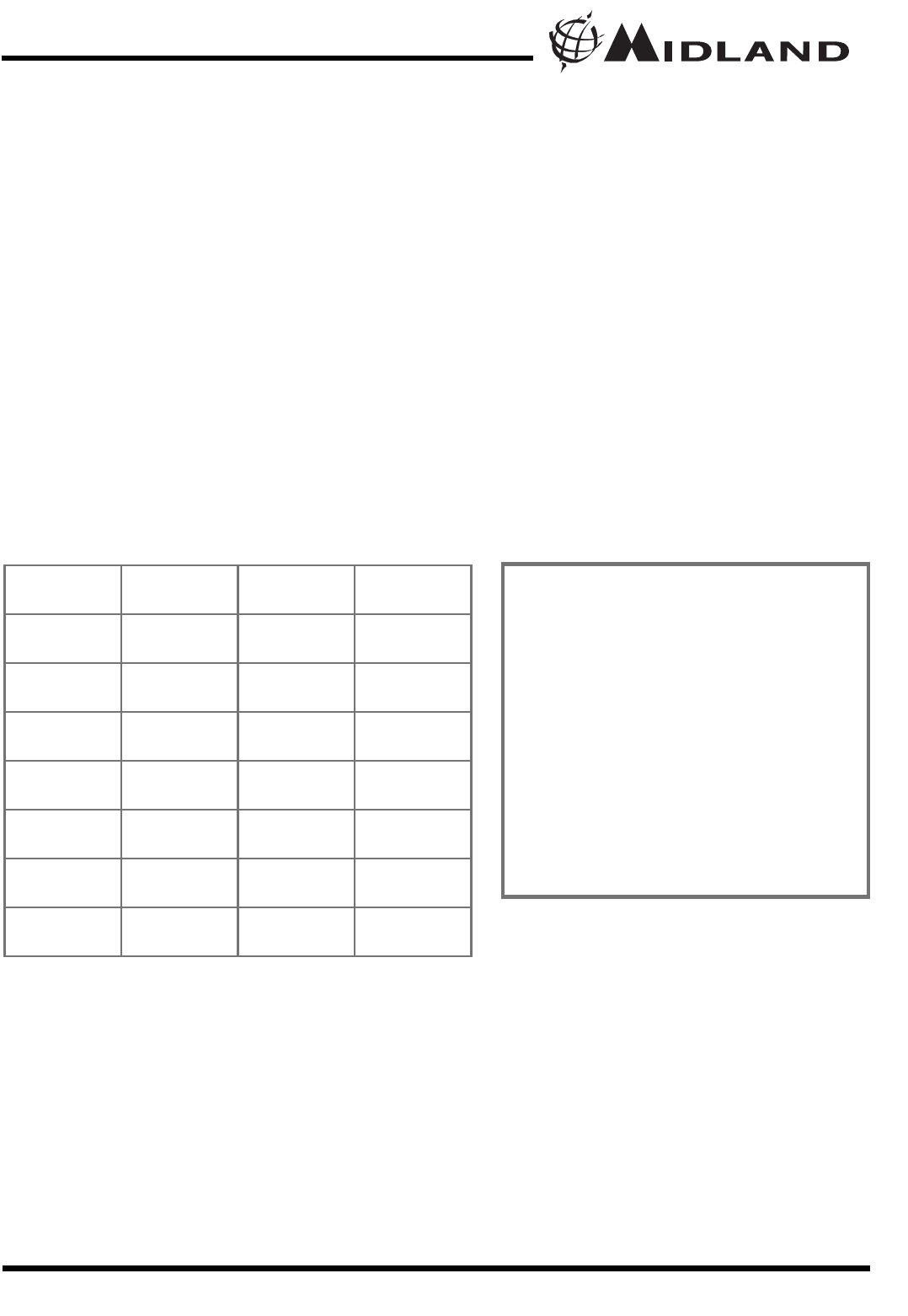 MIDLAND RADIO CORP. could void your right to operate this unit. Your radio is set