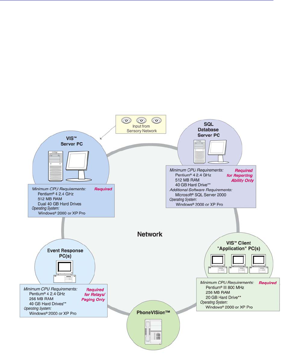 The VIS software runs in the Microsoft Windows 2000 or XP environments and requires a