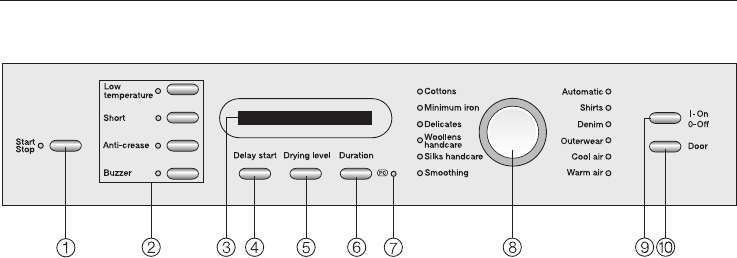 Operating the tumble dryer. . . . . . . . . . . . . . . . . . . . . . . . . . . . . . . . . . . . . . . . . 10