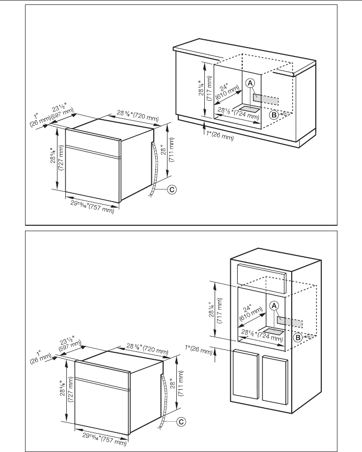 bCut-out for power cord (min. 1" 2/ 3 cm2)