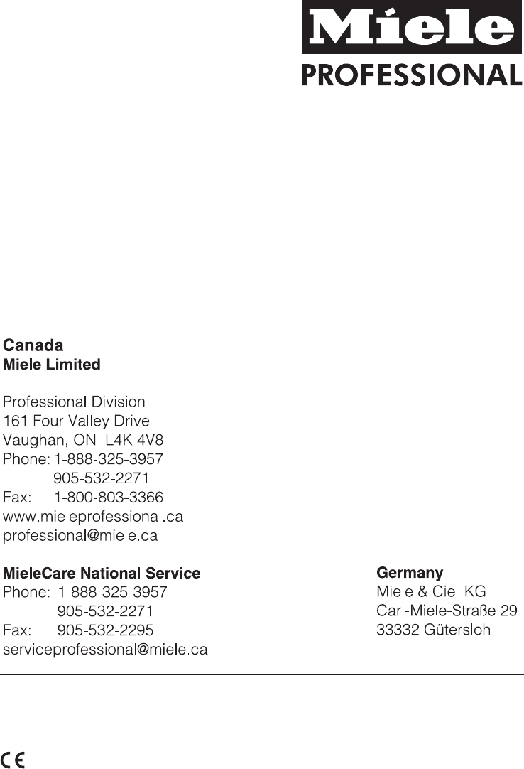 Miele Professional G 8050 Users Manual G8050_ca.vp