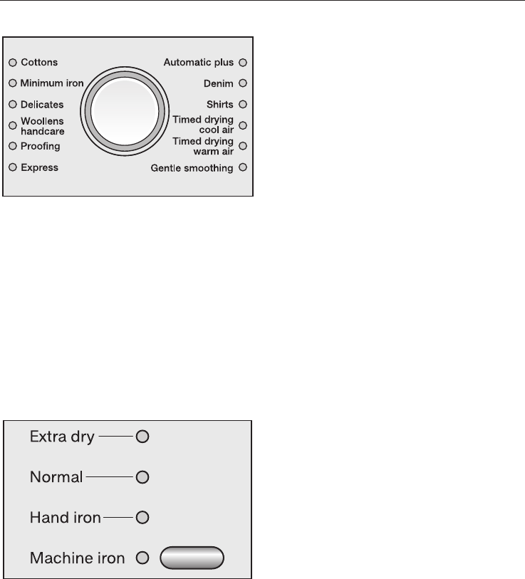 –Indicator lights Extra dry and Normal