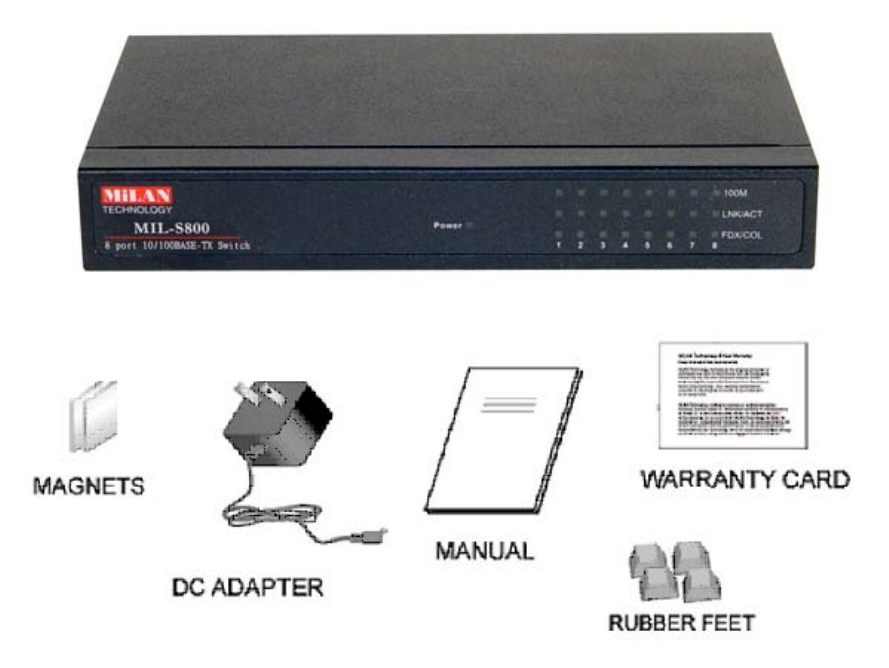 The MIL-S800 switch provides eight auto-sensing 10/100Mbps RJ45 Ethernet ports. This high performance,