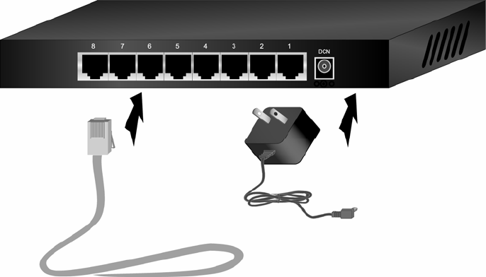 • 8 Auto-sensing RJ-45 ports for 10BASE-T or 100 BASE-TX connections