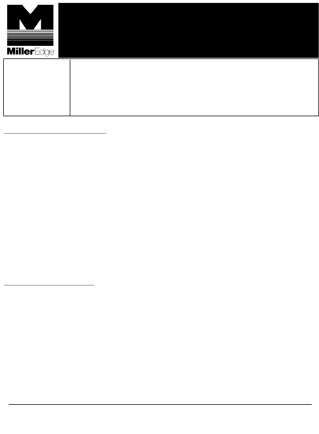 MILLER EDGE, INC. • P.O. Box 159 • West Grove, PA 19390 • 610-869-4422 • Fax: 610-869-4423 • 1-800-220-EDGE • www.milleredge.com