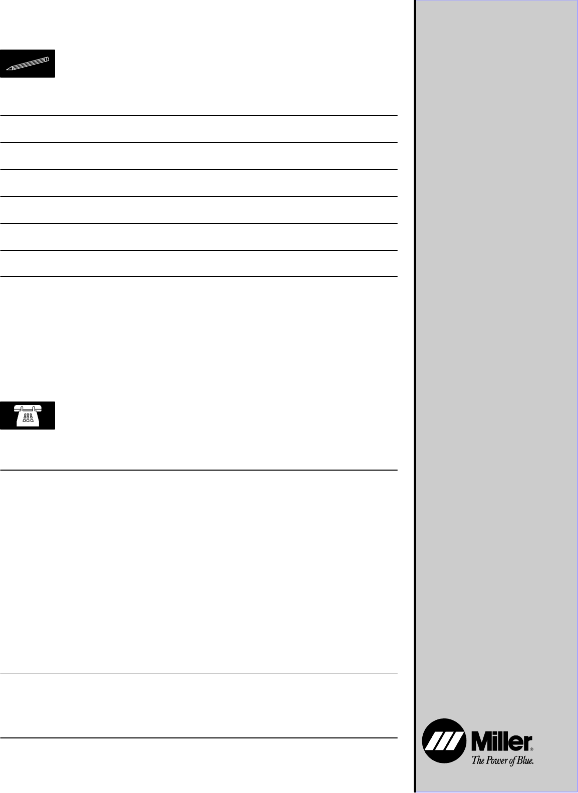PRINTED IN USA © 1999 Miller Electric Mfg. Co. 7/99
