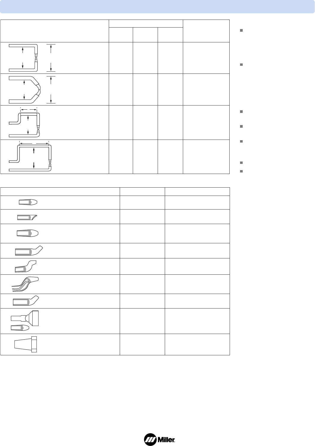 See page 3 for tong/tip combinations