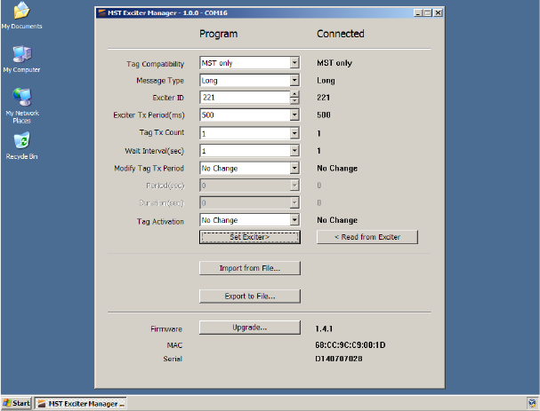 Tag Exciter can be run at faster speeds. Some other settings are not available