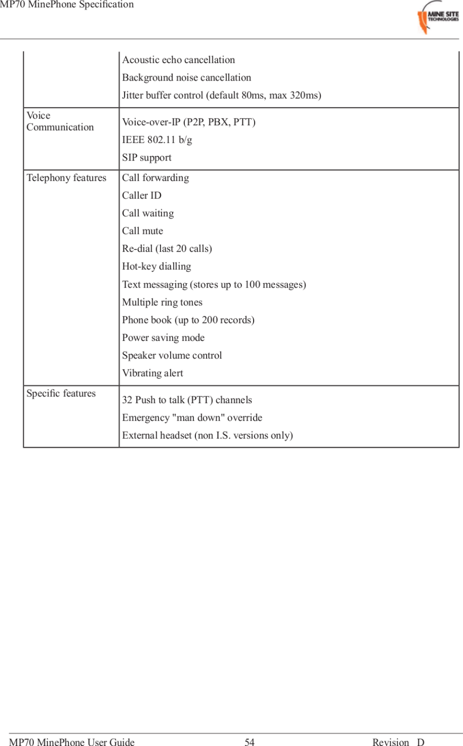 Mine Site Technologies MP70G2 Mine Phone User Manual
