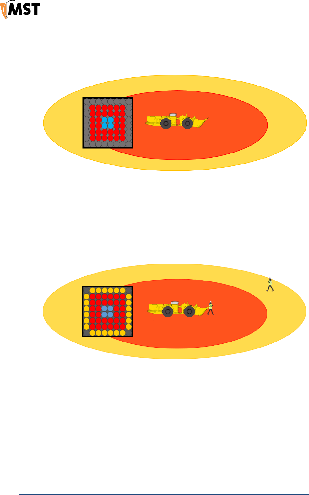 remain in the Warning zone. The blue LEDs remain since the operator is in the cabin.