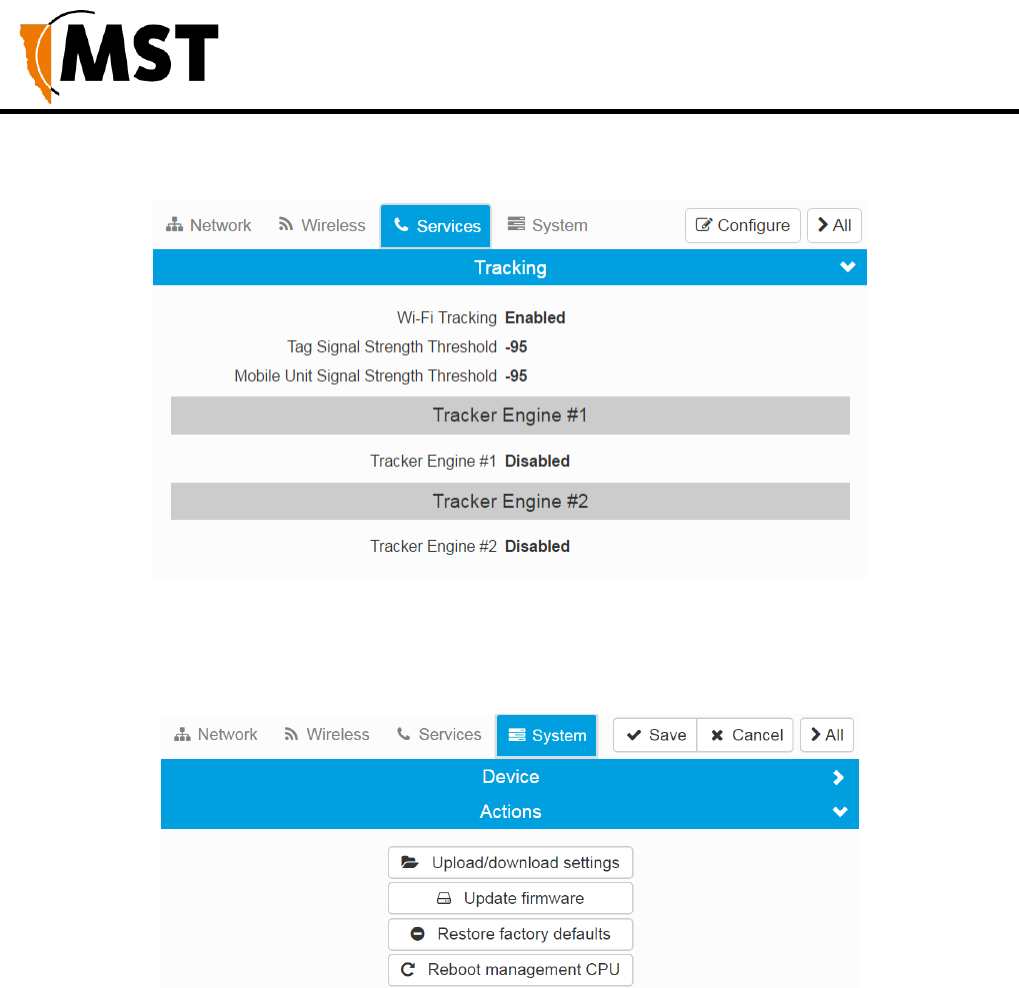 Open the web browser interface and select the Status > Tracking
