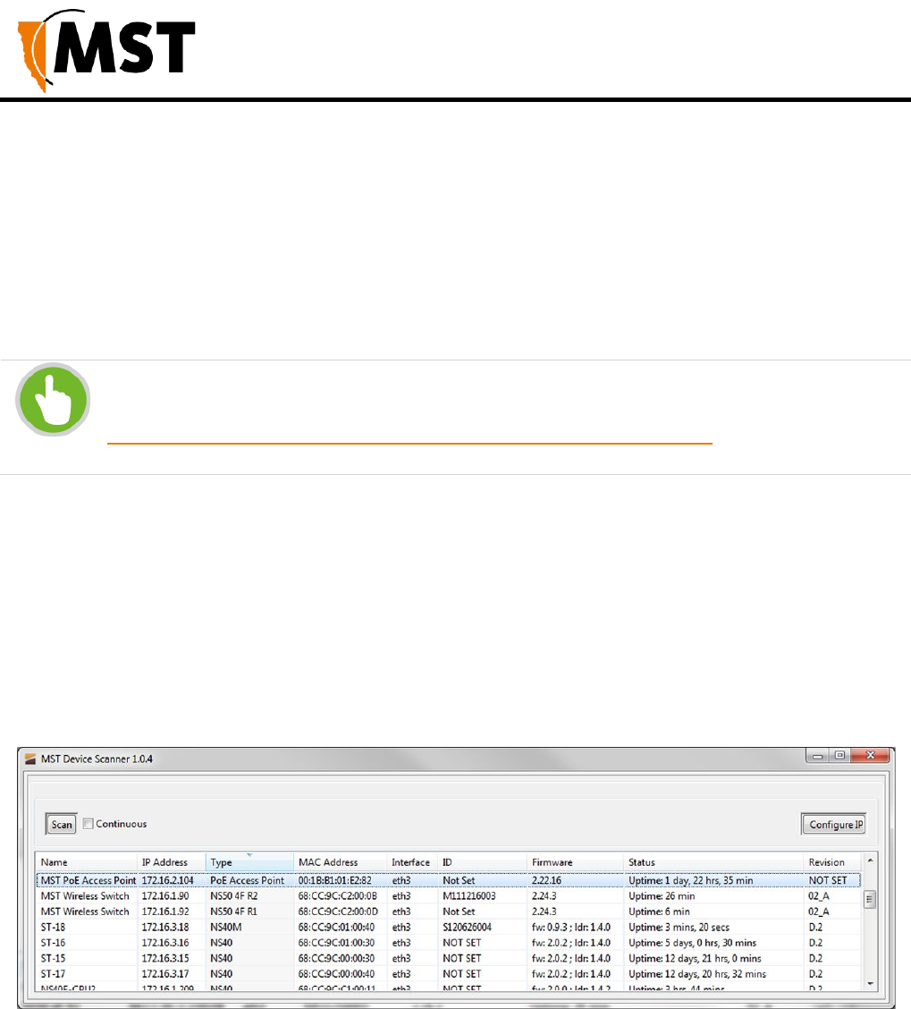Then run MST Device Scanner to assign an IP address as described in the Software section of