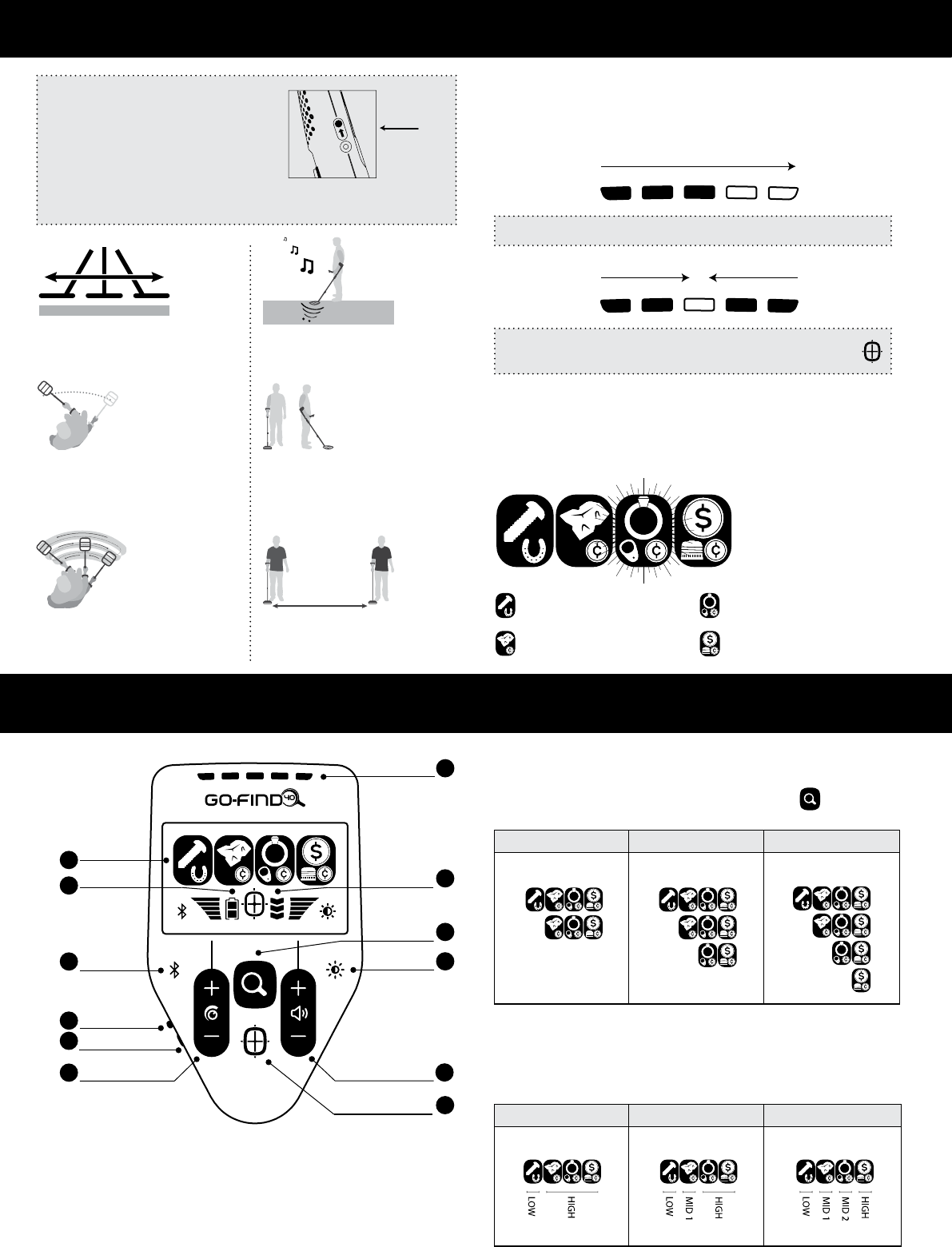 MID 2 TONE (GO‑FIND 60 ONLY): Higher value metals produce a higher medium tone.