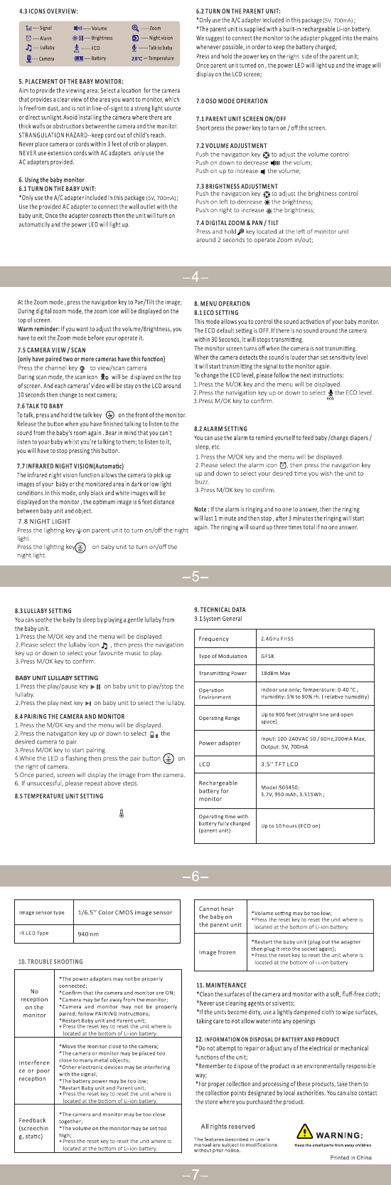 4.3 Baby unit overview: ModeL BM036 of Baby Unit