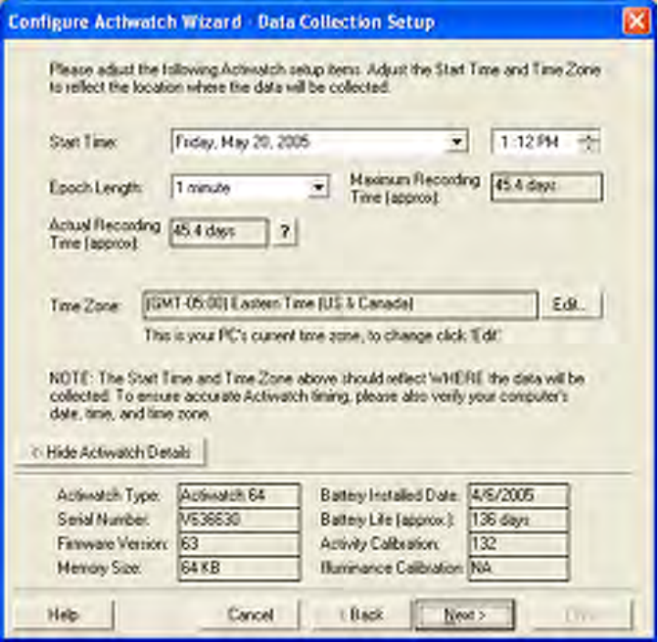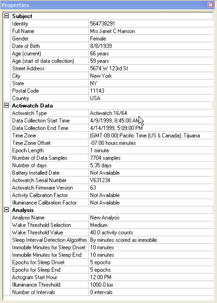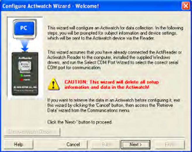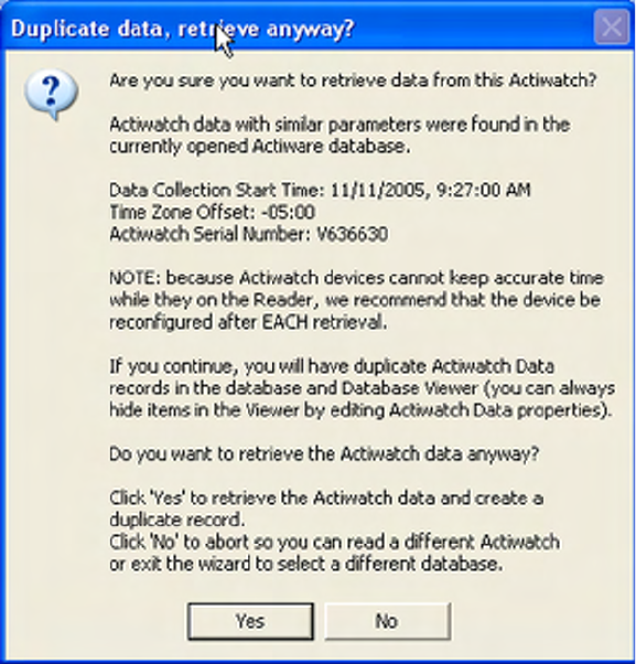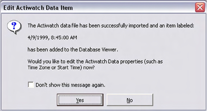 4. Click Yes to edit the Actiwatch Data properties or click No to bypass.