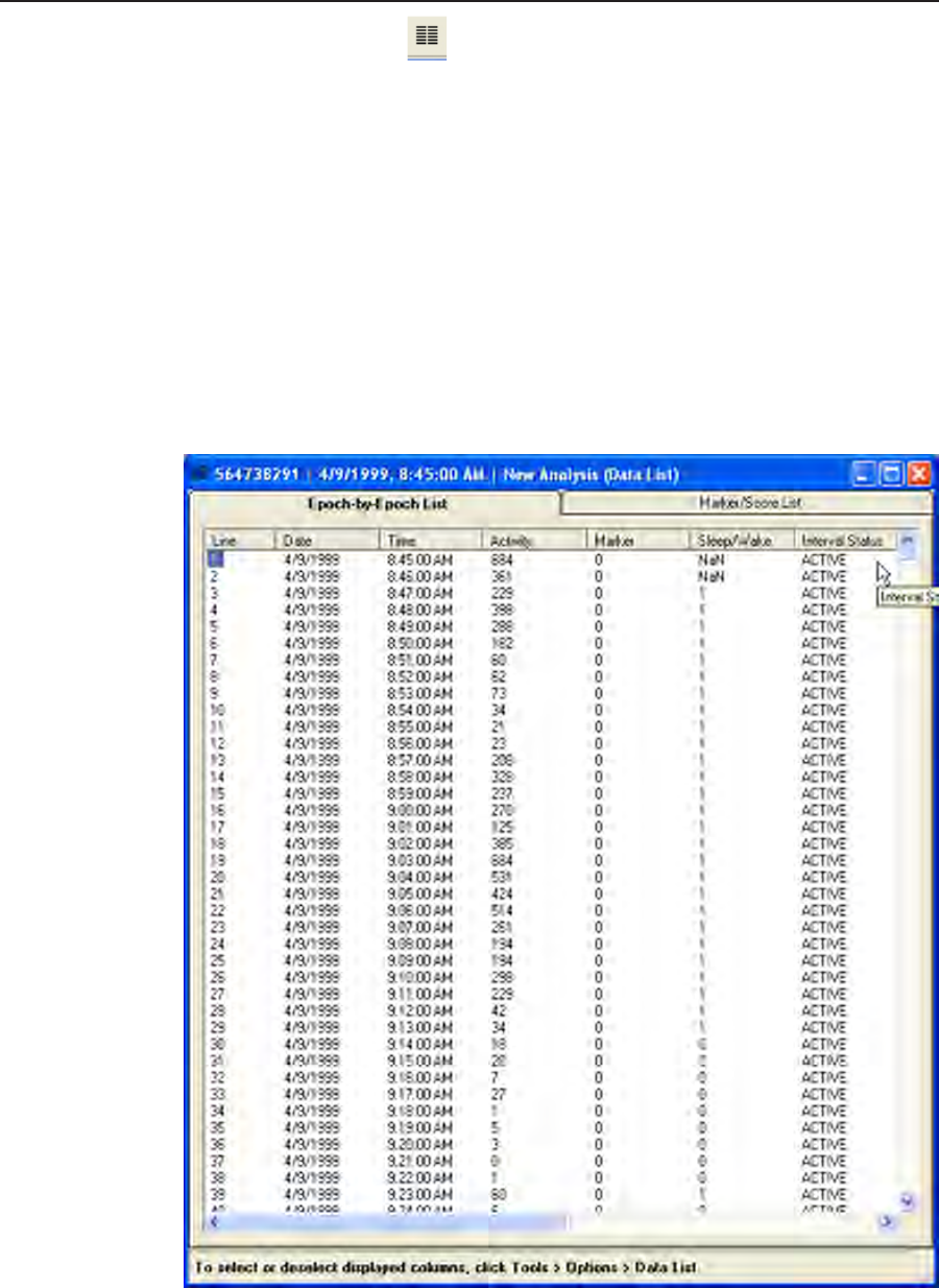 2. Click the Epoch-by-Epoch List tab or the Marker/Score List tab to view