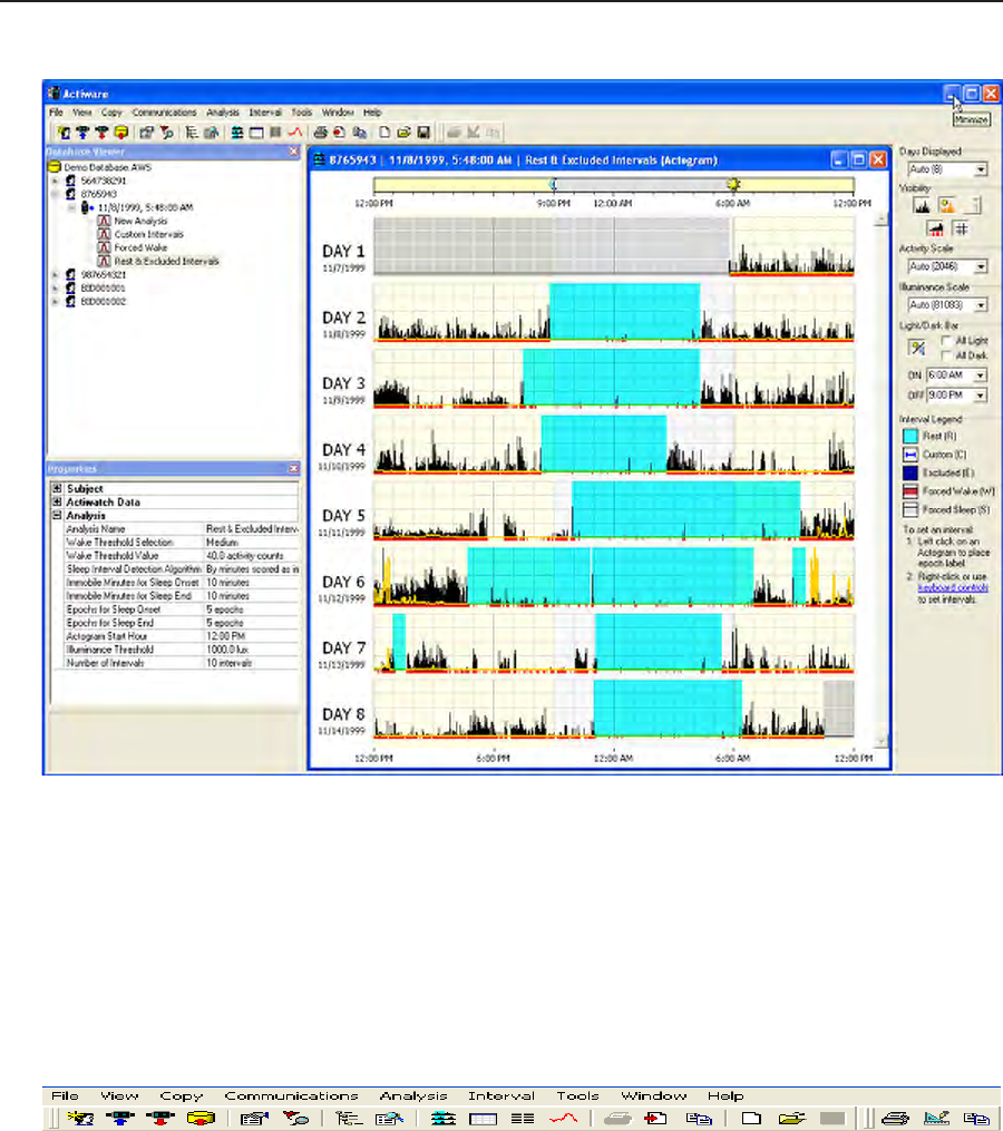 The Actogram Viewtoolbarisusedforadjustingtheviewing properties of an