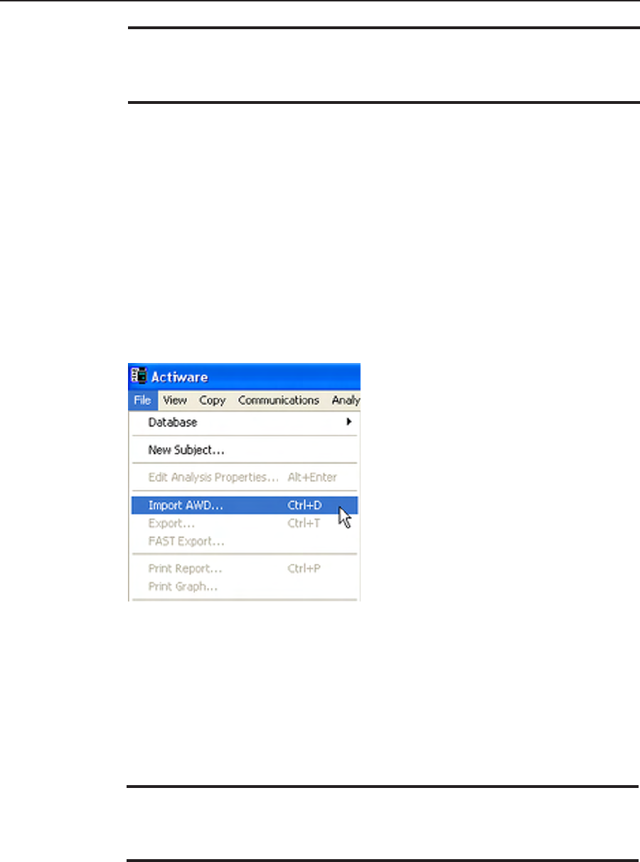 Note: .AWS les cannot be imported. Only .AWD (Actiwatch) les can be