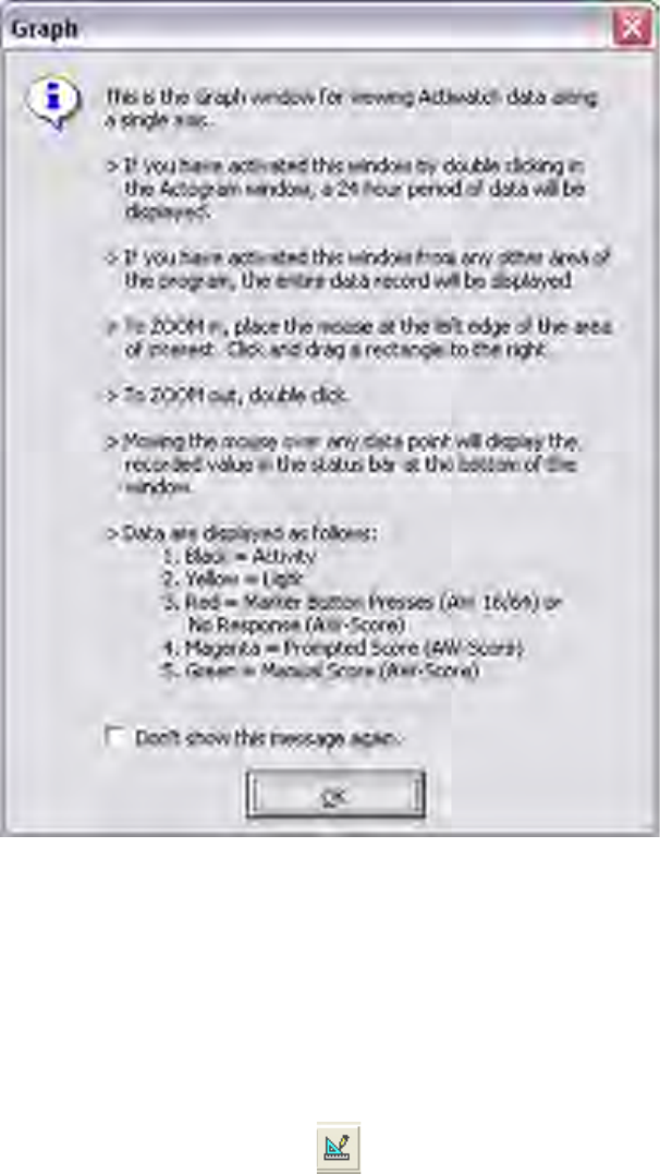 This is the Graph window for viewing Actiwatch data along a single axis.
