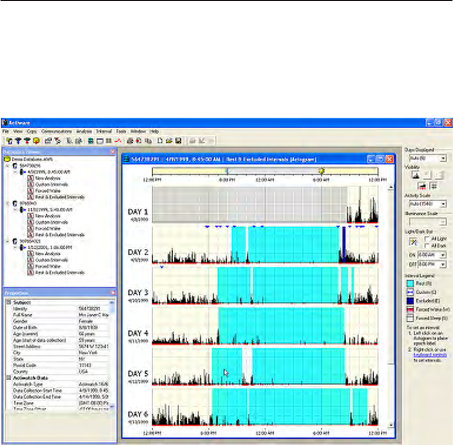 Dockable windows give the user direct access to the Actiwatch or subjectdata