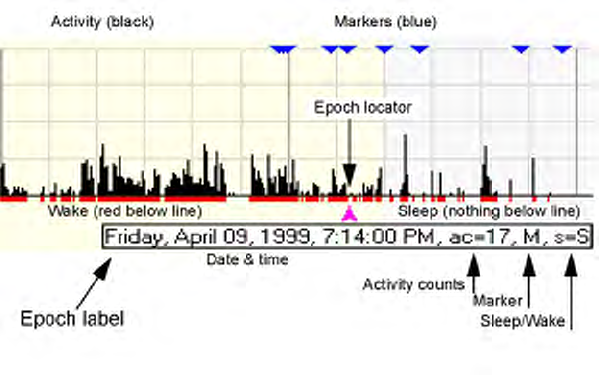 • Visibility: these buttons hide and show the data items in the Actogram: