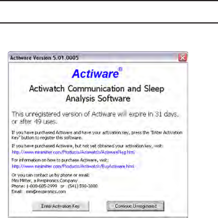 Respironics, Mini-Mitter, Actiwatch, and Actiware are registered trademarks of Respironics, Inc. and its afliates.