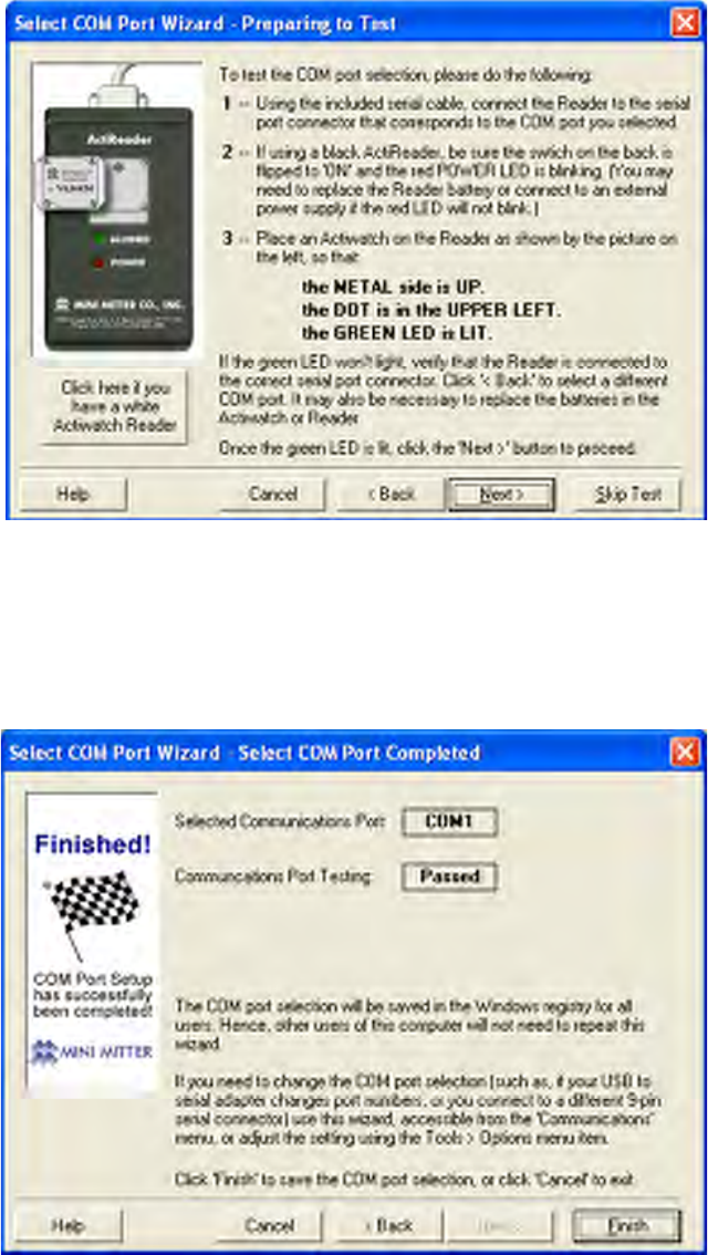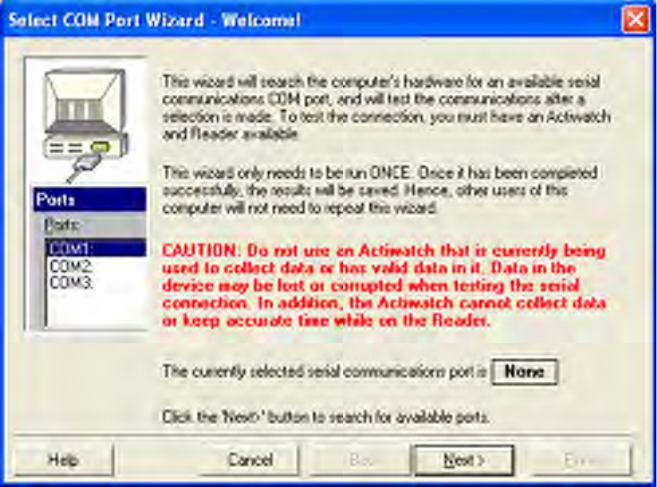 3-point check list and Actiwatch Reader differences are embedded in the COM Port Wizard