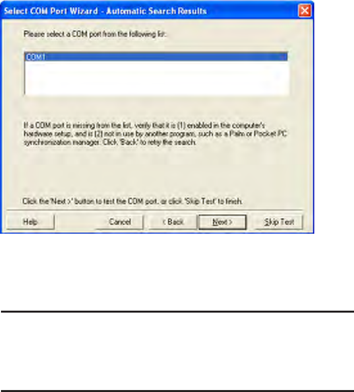 This will start the COMPortWizardwhichwillassistyouinsearchingforan