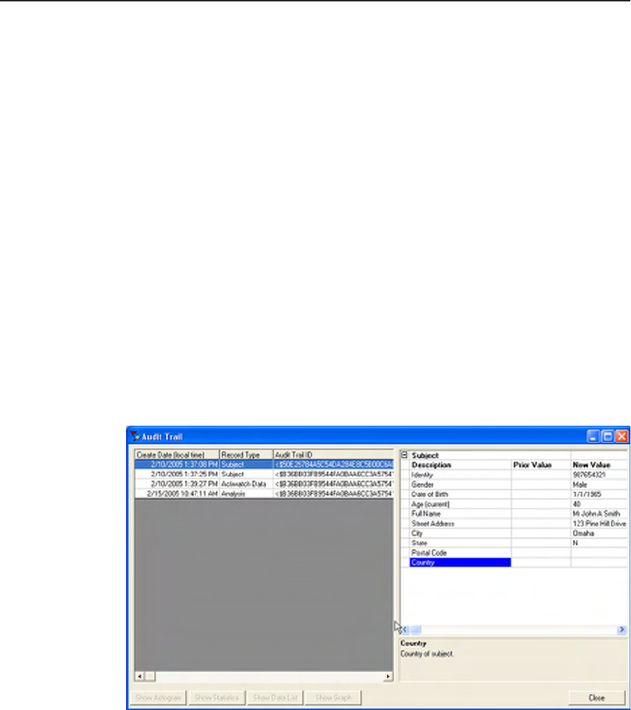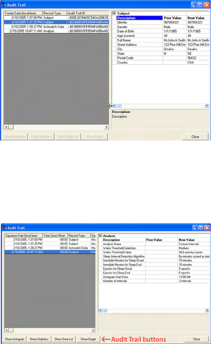 selecting the Audit Trail menu item. Each row in the left side of the window