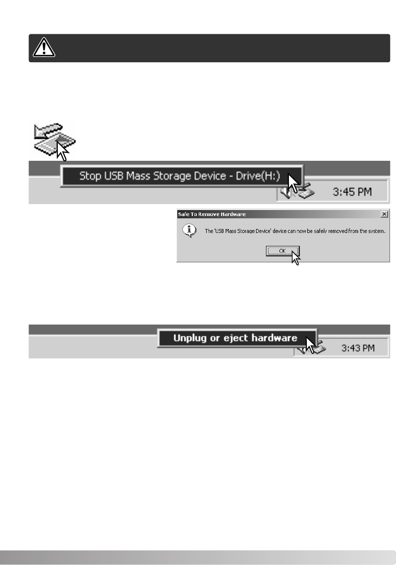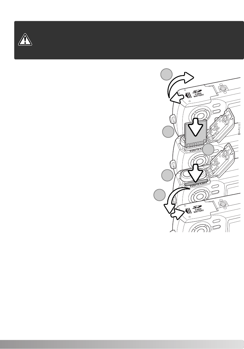 •Removing the card or interrupting the power supply while the camera or a computer is accessing