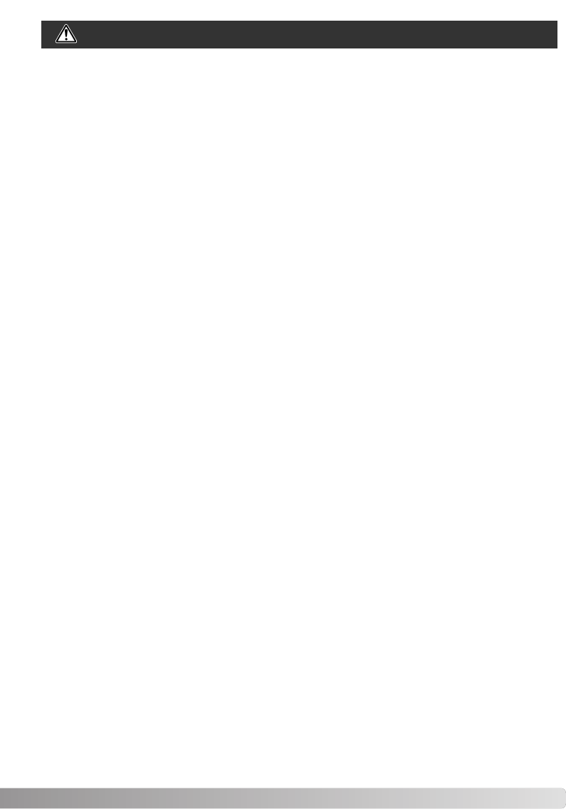 •Do not look directly at the sun or strong light sources through the viewfinder. It may damage your