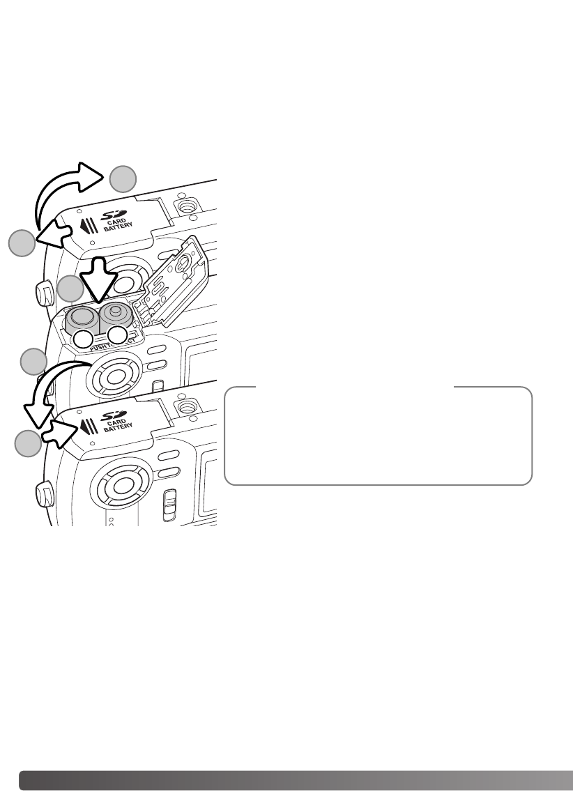•If batteries have been exhausted after use in the camera, do not reload them even if their charge