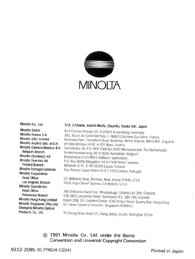 Minolta Dynax 3Xi Instruction Manual