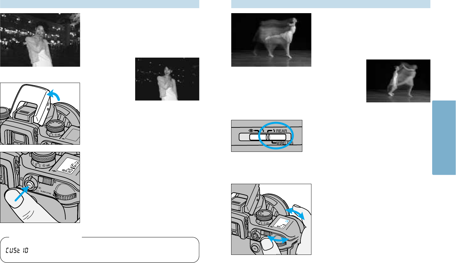 Wireless flash, Slow-sync, and Rear-flash sync.