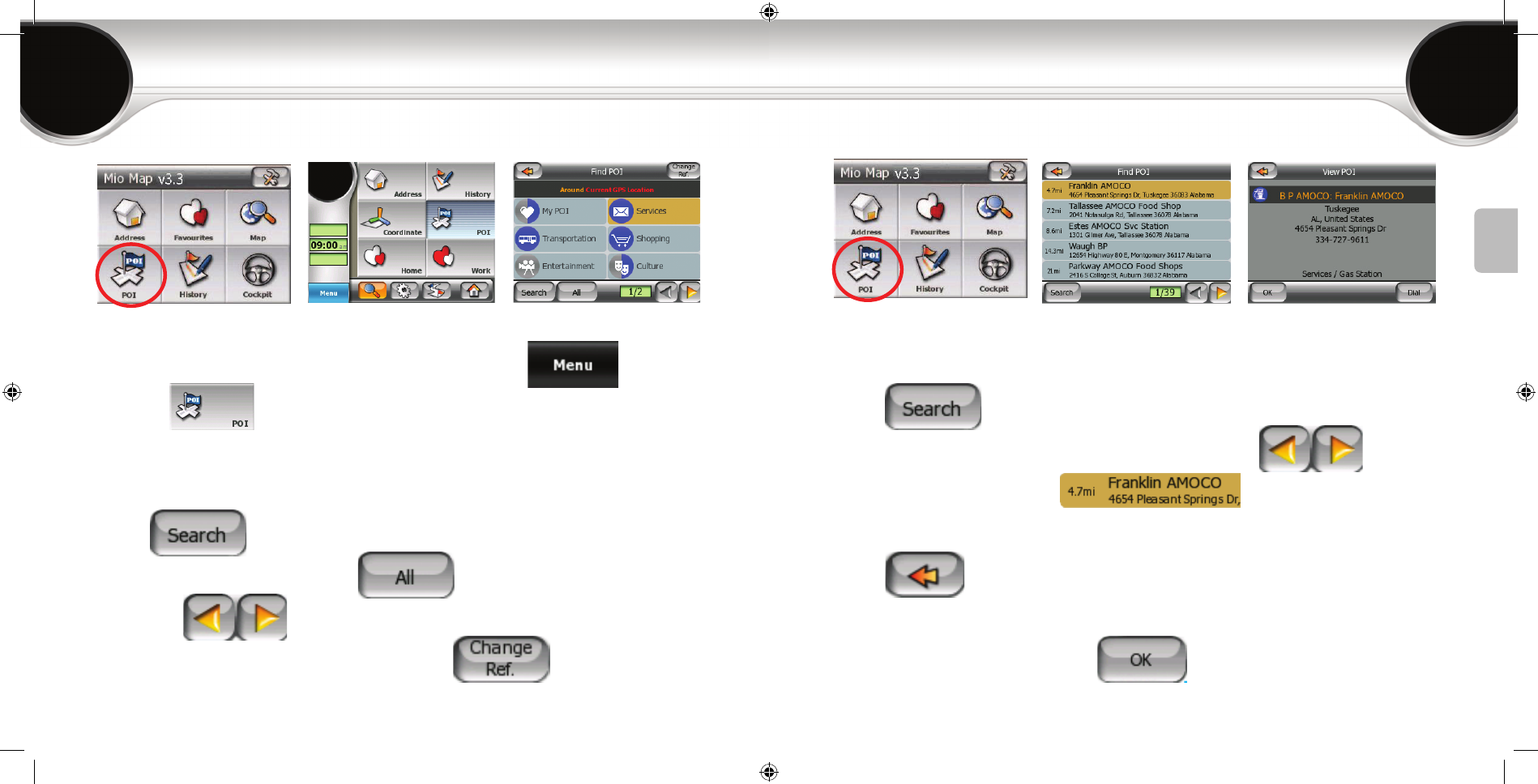 Para seleccionar un POI, abra el menú Find (Buscar) mediante