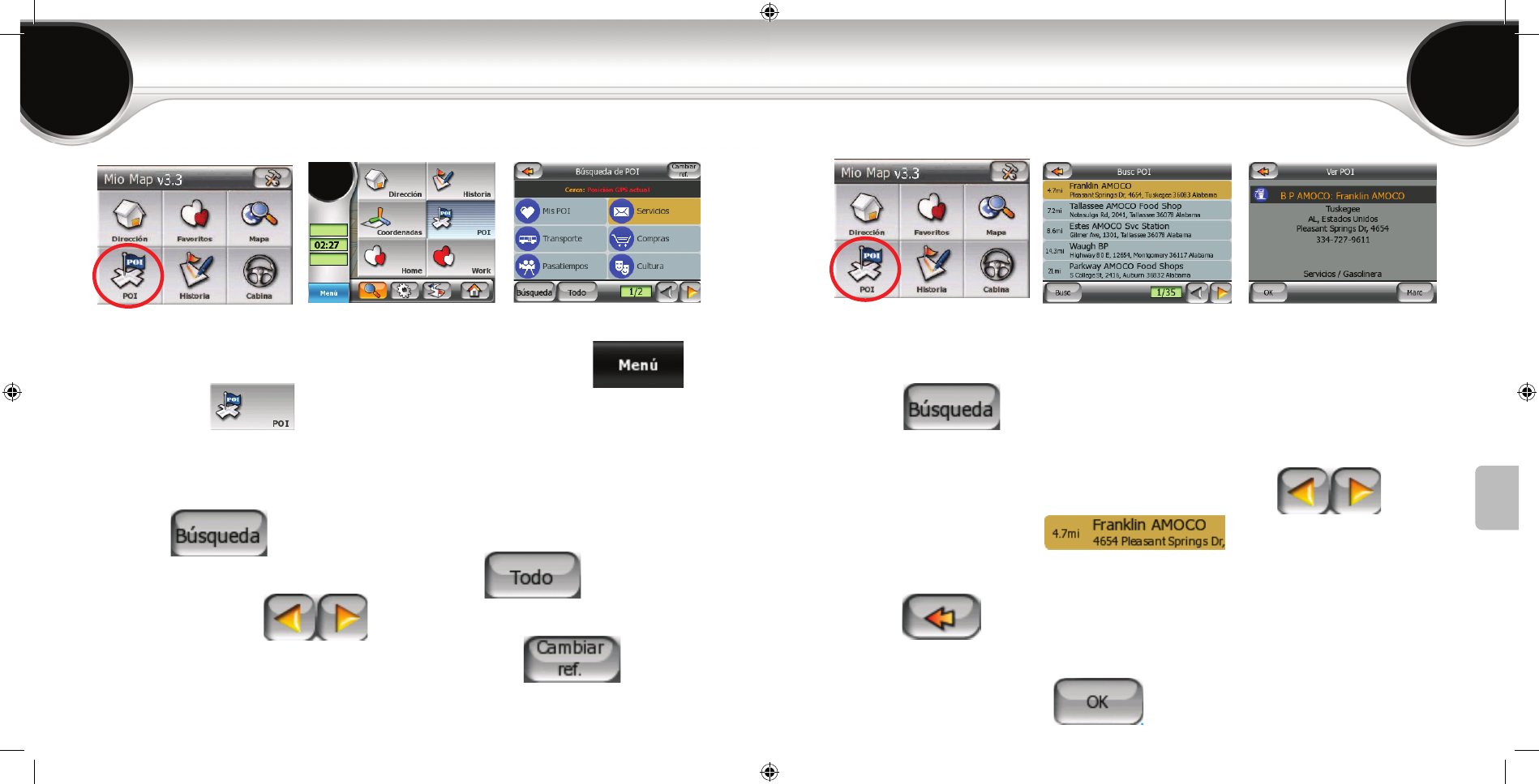 ● Para nalizar la búsqueda y volver a la pantalla de Mandos con el POI re