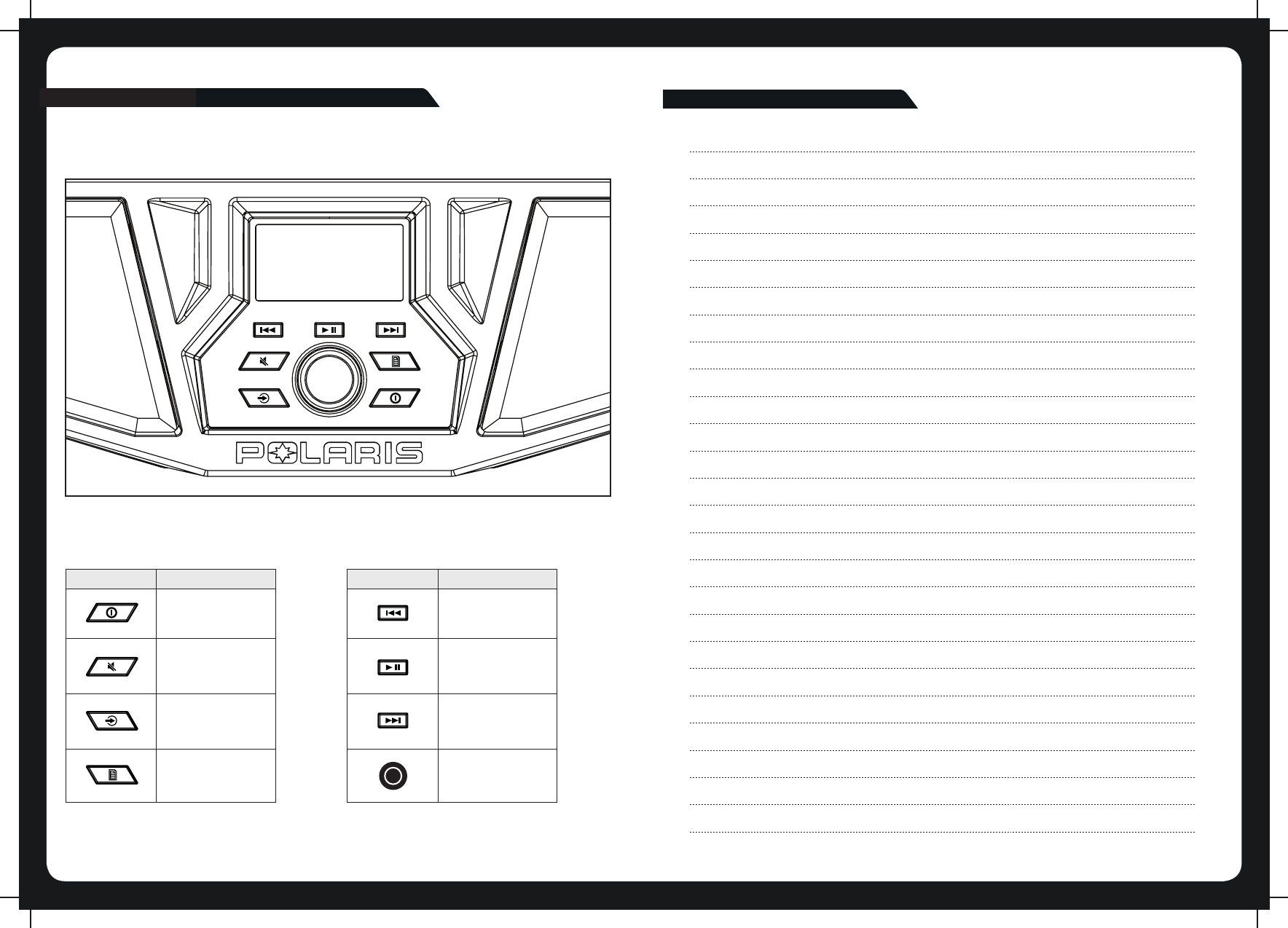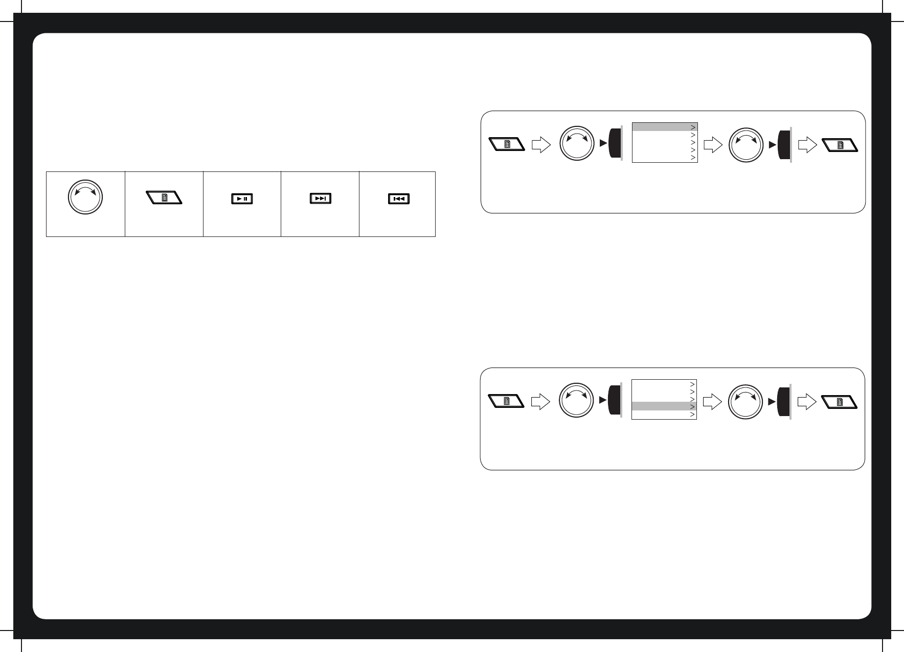 Rotary knob Menu key Play/Pause Forward Backward