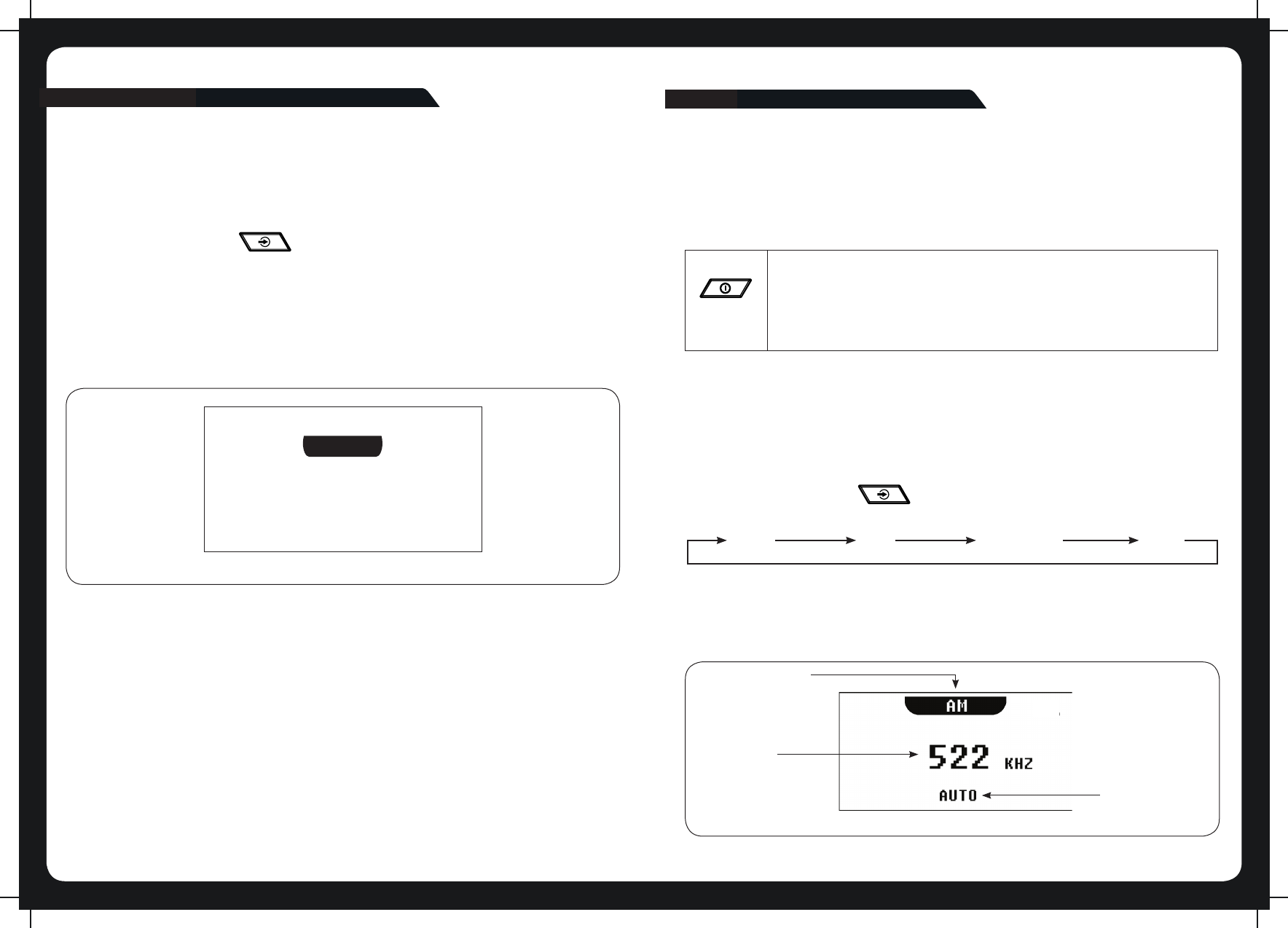 Continuing to press the key will display the input source screens for AM, FM and